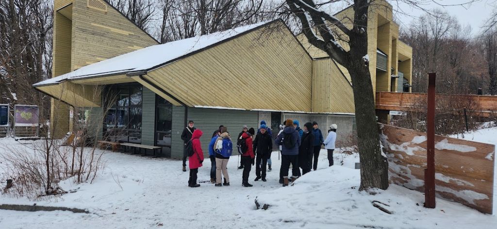Lieu du pique-nique : au retour, selon la météo, nous pique-niquons soit aux tables extérieures, soit à l’intérieur, dans la cafétéria de l’accueil