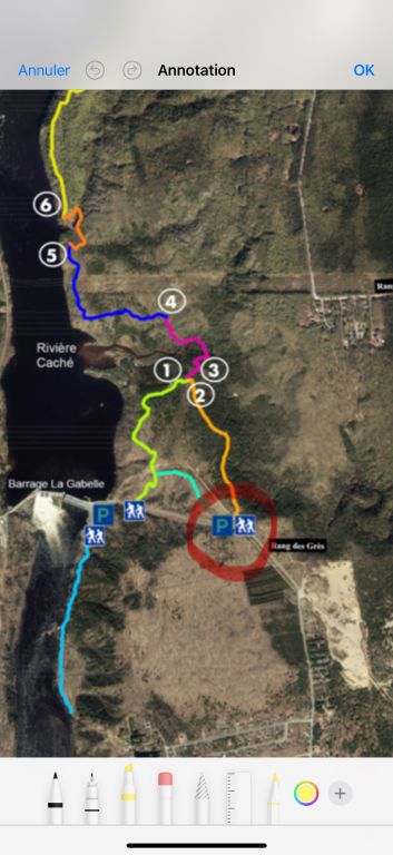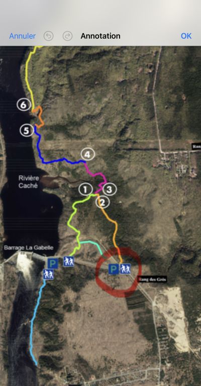 Il y a des montées et des descentes à pic mais le sentier est vraiment très beau et technique. Le parcours longe la rivière Saint-Maurice, offrant de nombreux points de vue sur celle-ci.